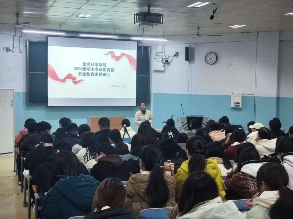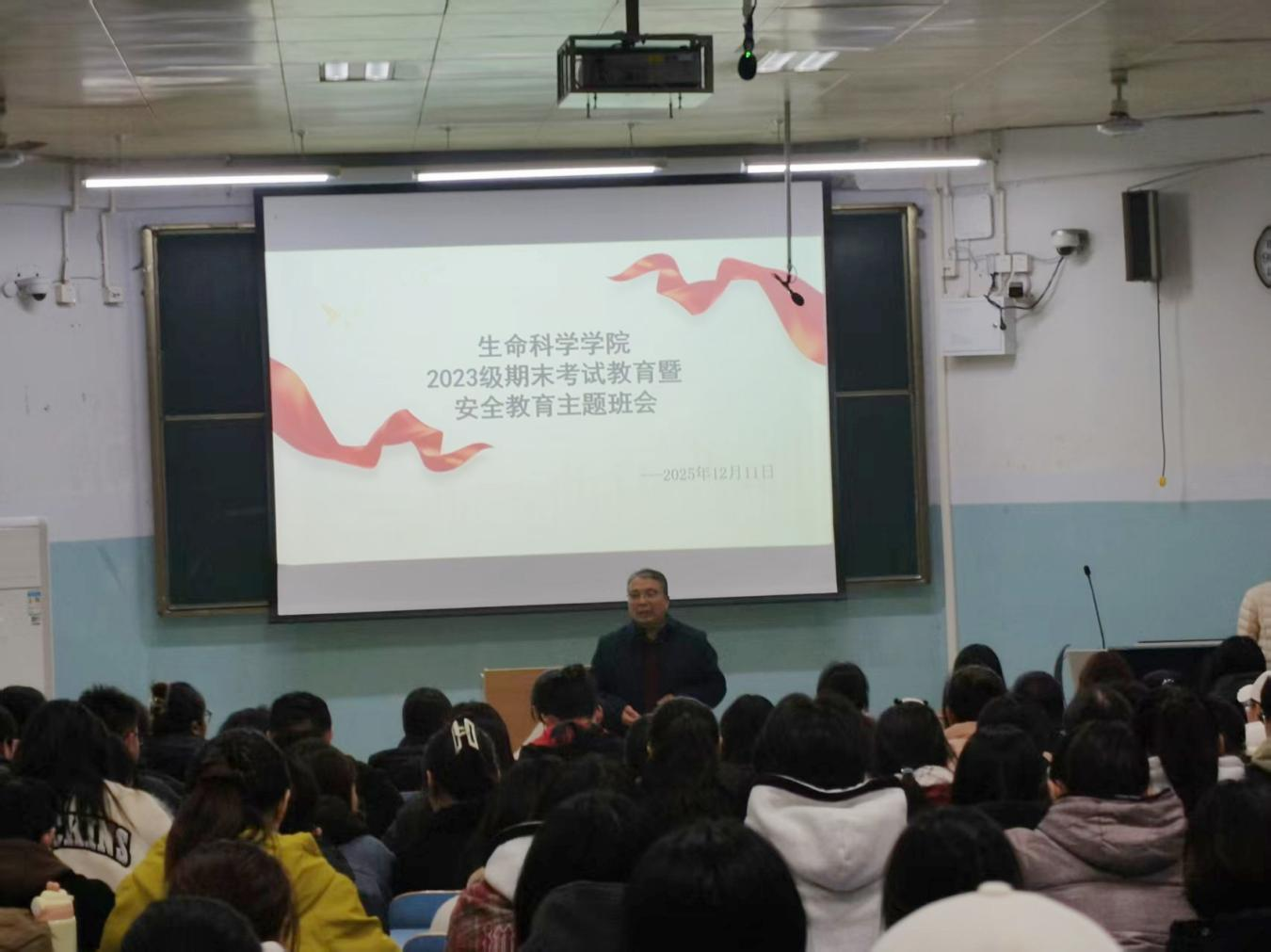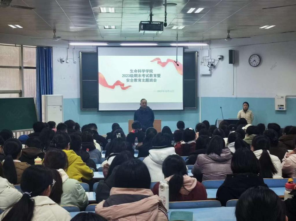 为进一步加强学生安全教育,引导学生树立正确价值观,严肃考风考纪,12月11日下午四点半,在教九305,生命科学学院面向2023级全体学生组织召开了期末考试动员暨安全教育主题班会。学院党委书记李刚、党委副书记荣宪举及2023级辅导员杨娟娟参加会议并作讲话。