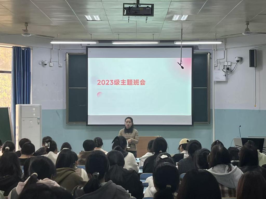 为加强学风建设,强化纪律意识,筑牢安全防线,进一步引导2023级学生明确学习目标、规范日常行为、提升综合素质,2025年11月14日,2023级全体学生在教九楼305教室召开了以“聚焦学习、严守纪律、守护安全”为主题的班会。本次班会由2023级专职辅导员杨娟娟主持,全体2023级学生共同参与。