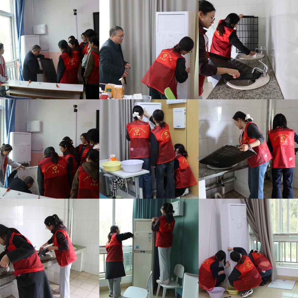 荣宪举与志愿者们一同清理空调滤网、擦拭外壳、清除灰尘杂物。大家分工明确、配合默契,以实际行动改善教室环境卫生。荣宪举在活动中指出,良好的学习环境是提升学习效率、保障师生健康的重要基础。他希望同学们增强责任意识,主动参与校园环境维护,养成爱护公共设施的良好习惯。