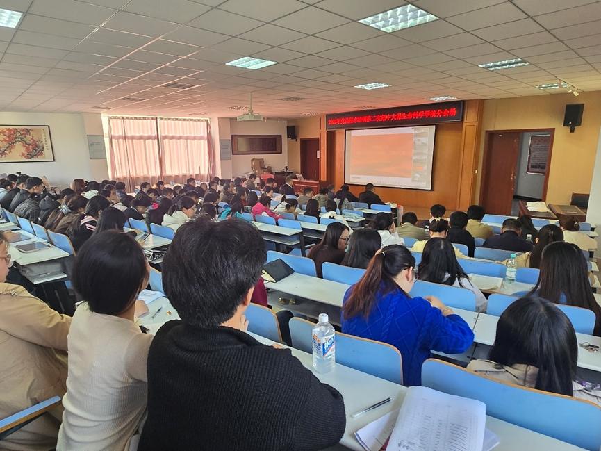 为深入学习贯彻习近平新时代中国特色社会主义思想,强化党员党性修养,提升党员队伍政治素质和履职能力。11月5日下午,我院于生科楼414分会场举行2025年党员基本培训第二次集中大课。本次培训由校党委副书记龚立新主持,生科院全体党员齐聚现场,共同学习中共中央党校副院长谢春涛教授主讲的《中国共产党与中华民族伟大复兴》视频课程。